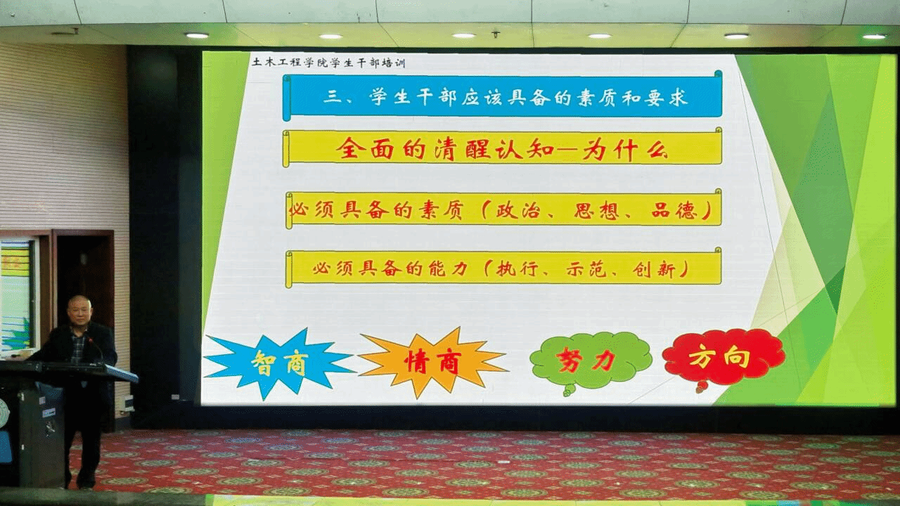 为帮助学生干部进一步明确职责、夯实工作基础,学生会办公室负责人刘亦婷对学生干部培养办法及班团量化考核内容进行解读;团委组织建设与发展指导中心负责人单家豪就团组织生活、团内评优及基础团务工作讲解要点;学生会学习学术部负责人覃敏慧详细介绍了课程秘书职责及考核加分办法。最后,道桥(本)202302班长伍春宏以“服务·协调·引领”为主题,分享优秀班集体建设经验,激励学生干部以责任诠释担当,以创新驱动成长。