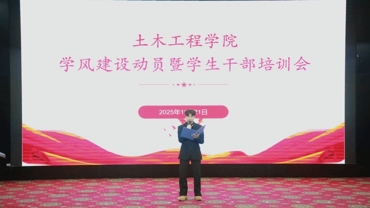 为持续深化学院学风建设,充分发挥学生干部的示范引领作用,2025年11月21日,土木工程学院于图书馆报告厅召开学风建设动员暨学生干部培训会。学院党委副书记、纪委书记赵中国、学院党委办公室辅导员、相关部门学生干部及各小班班长、团支书、学习委员、课程秘书共计300余人参会。