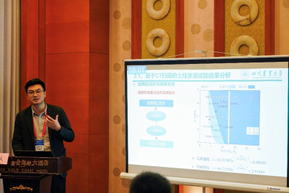 唐俊峰副教授在分会场报告中作了题为《基于CT扫描的毛细屏障覆盖层孔隙结构变化与渗流特征研究》的学术报告,通过 CT三维重建技术, 结合分形维数( fractal dimension)与孔隙网络模型(PNM)定量表征孔隙演化规律 ,揭示了毛细屏障突破区土体内部细颗粒迁移机制和渗流特征 。