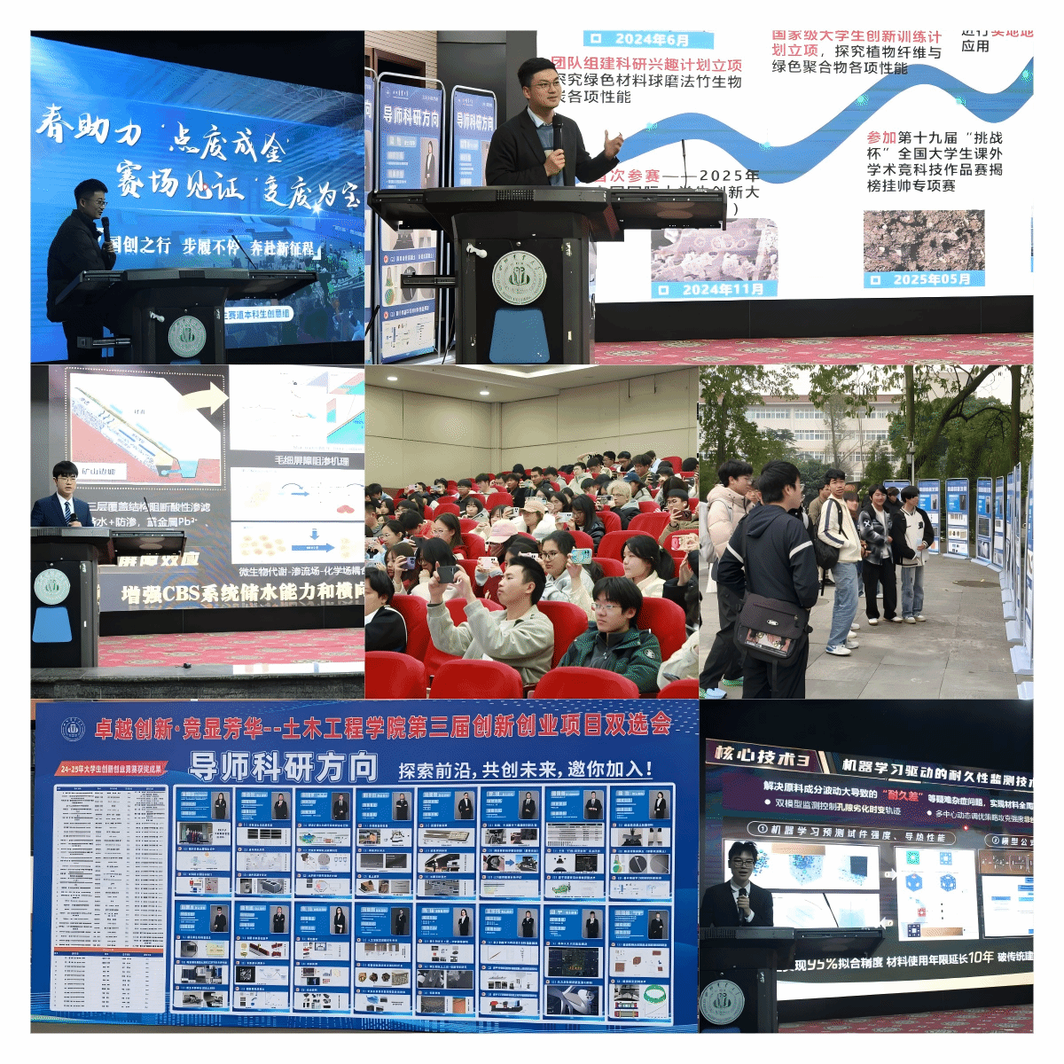 作为“三阶五环”体系的关键落地场景,年度双选会已成为学院师生共创的桥梁。本届双选会上,17支团队方向覆盖智能建造、绿色材料、智慧防灾等前沿领域,学生可根据兴趣与专长自主选择、直接对接。会上,获奖团队进行路演分享,指导教师现场解读课题,真正实现了“团队带项目、项目引学生、学生促创新”的良性互动