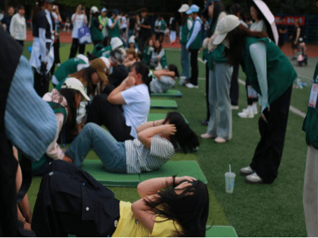 比赛当天,都江堰校区绿茵赛场上比赛氛围热烈。仰卧起坐项目率先开赛,选手们快速起身、坚持到底,志愿者专注配合、认真计数,场边呐喊助威声不断。引体向上赛场,男生们动作连贯、拼尽全力,体力不支时仍咬牙坚持,尽显力量与韧劲。立定跳远区域,选手们蹬地腾空、奋力一跃,落地扬起的沙粒,定格下青春爆发力的精彩瞬间。全体参赛同学不畏挑战、永不言弃,用汗水和坚持生动诠释了体育精神。