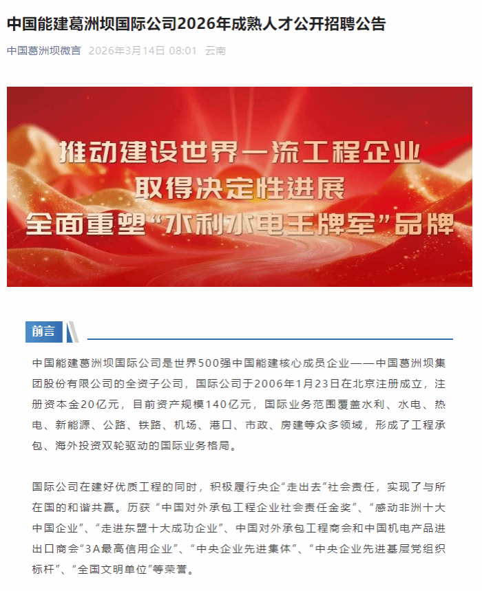 【世界500强】中国能建葛洲坝国际公司