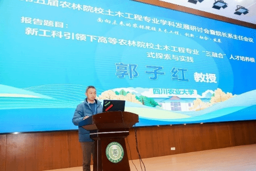 郭子红教授应邀作“新工科引领下高等农林院校土木工程专业三融合人才培养模式探索与实践”的大会报告,曾宇声副教授作“碱活化铁尾矿固碳多孔保温材料固化与热工性能探索”的特邀报告,受到与会专家学者关注。展现了我校土木工程专业人才培养特色和低碳绿色建材研究成果,增进了我院与相关单位的交流。